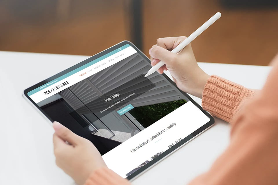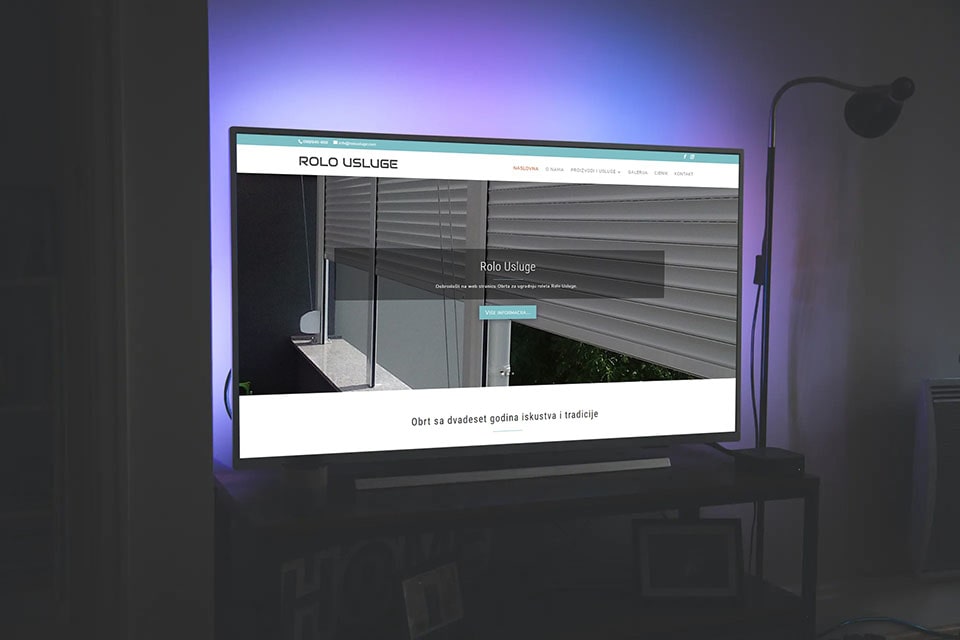 Rolo Usluge projekt je koji je napravljen u srpnju 2013. godine, dok je najnoviji dizajn napravljen u Rujnu 2019. godine. Dizajn je oblikovan po želji vlasnika obrta. Naglasak je stavljen na prezentaciju roletarskih usluga, ponudu i pregled oglednih radova.
